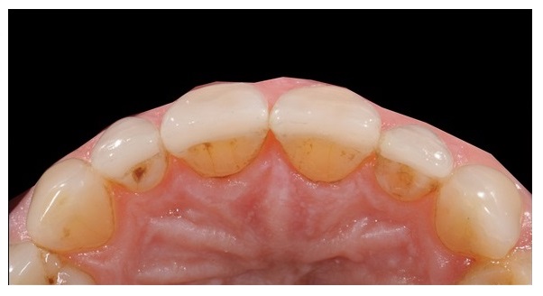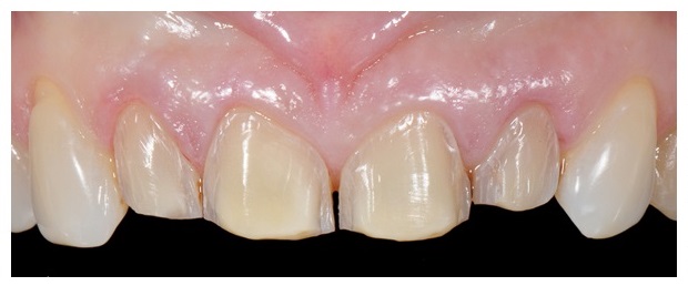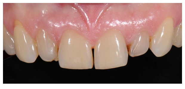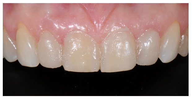 La paziente si presenta richiedendo il miglioramento dell'estetica del sorriso e la risoluzione della discromia a carico degli incisivi laterali.