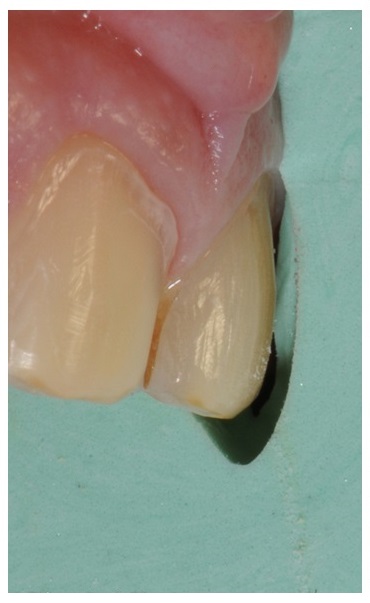 Si noti come i margini della preparazione vengano mantenuti all'esterno del contorno gengivale.